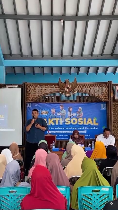 Dalam rangka HUT ke 12th RSU Dadi keluarga mengadakan Bakti sosial di balai desa banjaranyar, sokaraja. kegiatan pengabdian masyarakat yang dilakukan RS untuk memberikan pelayanan kesehatan gratis dan edukasi, seperti pemeriksaan umum, konsultasi dokter dll.