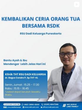 angan ragu untuk memeriksakan diri ke Poli THT RSU Dadi Keluarga Purwokerto untuk mendapatkan penanganan profesional dan meningkatkan kualitas hidup di usia lanjut.